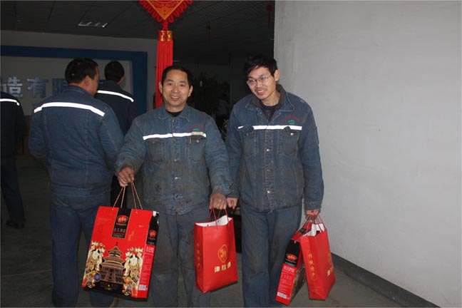為感謝全體員工一年來的辛勤工作,祝福員工度過一個(gè)歡樂喜慶的新年,公司本著,一切以為員工謀福利的原則,為每位員工購置了禮品(若羌大棗、稻花香金玉滿堂)。讓員工把公司溫暖帶回家。
