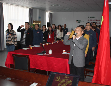 2014年3月19日上午9:00公司支部全體黨員在會(huì)議室召開第一次黨員大會(huì),整個(gè)會(huì)場莊嚴(yán)而肅穆。 大會(huì)分5個(gè)議程,在此會(huì)上,全體黨員面對黨旗和鮮艷的五星紅旗在支部書記何總的帶領(lǐng)下重溫入黨誓詞,全體黨員再次認(rèn)真全文學(xué)習(xí)了黨章,并選舉產(chǎn)生了支部委員。