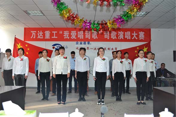 3月30日下午,鄭州萬(wàn)達(dá)重工第一屆“我愛(ài)唱司歌”司歌演唱大賽在公司行政區(qū)會(huì)議室圓滿舉辦。公司董事長(zhǎng)、書(shū)記何清出席比賽活動(dòng)并做總結(jié)點(diǎn)評(píng),公司工會(huì)主席于江山致開(kāi)幕詞。工會(huì)主席于江山、副總經(jīng)理馬曉延、財(cái)務(wù)總監(jiān)劉保國(guó)及有關(guān)職工代表?yè)?dān)任比賽評(píng)委。活動(dòng)特邀黃河科技學(xué)院音樂(lè)學(xué)院代小浩老師擔(dān)任了比賽專業(yè)評(píng)委。