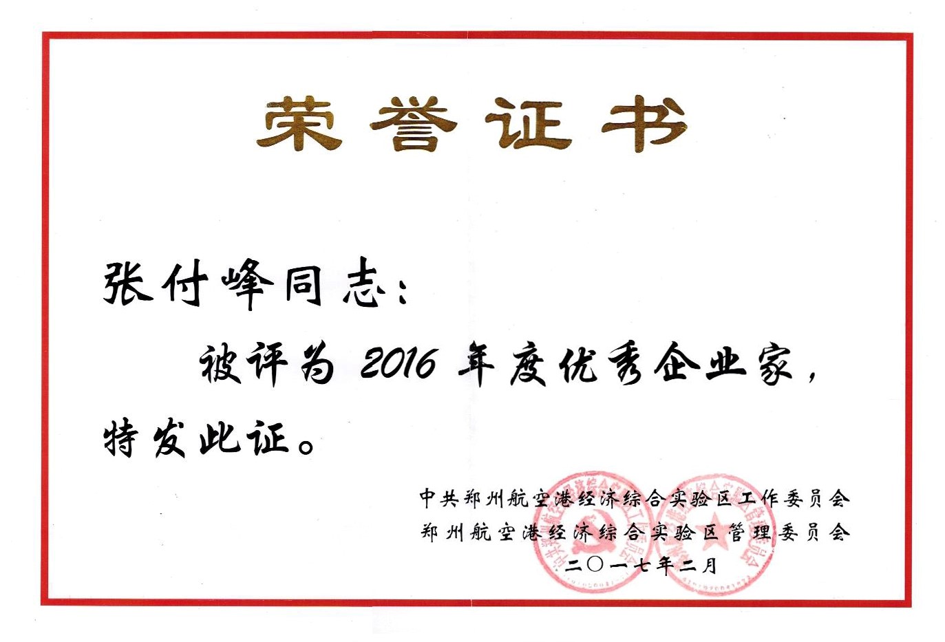 會議表彰了2016年度先進單位和先進個人,萬達重工喜得榮譽。其中鄭州萬達重工股份有限公司榮獲 “2016年度雙創(chuàng)先進企業(yè)” 榮譽稱號;公司總經(jīng)理張付峰榮獲2016年度鄭州航空港經(jīng)濟綜合實驗區(qū)“優(yōu)秀企業(yè)家”榮譽稱號;肖松節(jié)、朱愛秋等兩位同志榮獲2016年度鄭州航空港經(jīng)濟綜合實驗區(qū)“優(yōu)秀企業(yè)員工”榮譽稱號。