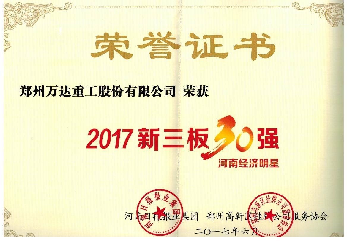 熱烈祝賀鄭州萬(wàn)達(dá)重工股份有限公司榮獲河南新三板“TOP30強(qiáng)”
