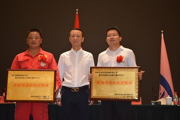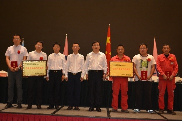 按照會議議程,大會對鄭州萬達科技發(fā)展有限公司、生產(chǎn)管理部金加工模塊頒發(fā)了“第六屆質(zhì)量月活動先進集體”榮譽獎牌,向王明錄、孫鵬飛頒發(fā)了“第六屆質(zhì)量月活動優(yōu)秀個人”榮譽證書并對丁西彬頒發(fā)了“中石油年度投標工作優(yōu)秀個人”榮譽證書;并由丁西彬代表獲獎人員致獲獎感言,股份公司領(lǐng)導(dǎo)與先進集體、優(yōu)秀個人進行了合影留念。