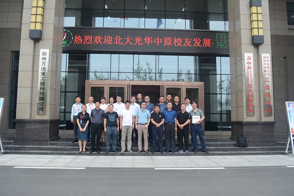 2018年暑期,為更好凝聚校友友情,加深了解、資源共享、合作共贏,北京大學光華管理學院中原校友發(fā)展研究會舉辦了“燕園學子中原行,校友企業(yè)風采楊”校友企業(yè)參訪活動,8月4 日上午北京大學光華管理學院中原校友團19人蒞臨萬達重工,股份公司總經(jīng)理張付峰帶領高管團隊給予了熱情接待。