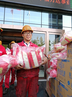 今天下午15:30,在萬達重工行政樓一樓大廳,人力行政中心為全體員工發(fā)放了載滿祝福的中秋禮品:每人一盒七星伴月月餅,祝福著萬達家人闔家團圓、幸福美滿;一桶多力葵花籽食用油、一袋大米,希望萬達家人家庭和諧、幸福美滿。以部門為單位進行領(lǐng)取,大家有的手提、有的肩扛、有的一起合力抬,萬達人個個臉上洋溢著喜悅之情,現(xiàn)場呈現(xiàn)出一片喜氣洋洋、熱鬧非凡的景象。