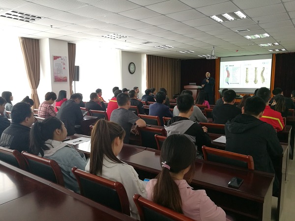 4月29日中午,針對公司生產(chǎn)崗位員工工作站立時間長等特點,王剛老師專門為員工講授了一套健身鍛煉方法,使大家隨時隨地都能夠進(jìn)行練習(xí)鍛煉;4月30日,針對公司行政類崗位員工久坐、低頭伏案等特點,王剛老師精心為大家講解了頸椎病、腰肌勞損、不良睡坐姿等因素使員工產(chǎn)生身體疾病及如何預(yù)防和調(diào)理的健康知識講座,并通過現(xiàn)場教學(xué)指導(dǎo)等方式,為大家上了一堂生動的健康管理和綜合調(diào)理健康講座。通過面對面地交流及傳授,讓廣大員工更透徹地領(lǐng)會了相關(guān)疾病的預(yù)防和保健,以及健康的行為和生活方式。