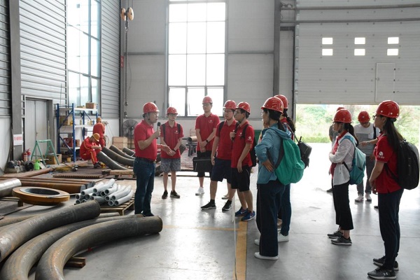 北大學(xué)生黨員“圓夢先鋒”鴻雁計劃一行先后深入堆焊生產(chǎn)車間進(jìn)行了參觀,薛總就公司復(fù)合堆焊設(shè)備和技術(shù)、管件生產(chǎn)設(shè)備和技術(shù)向?qū)W生們進(jìn)行了詳細(xì)講解。隨后,北大學(xué)生黨員參觀了萬達(dá)重工二樓黨員活動室、黨群活動紅色長廊、運動健身室等一千多平方米的黨群基地。于副書記向參觀組一行簡要介紹了萬達(dá)重工黨建基地建設(shè)情況。