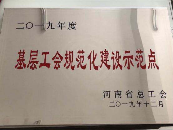 鄭州萬(wàn)達(dá)重工股份有限公司工會(huì)榮獲河南省“2019年度基層工會(huì)規(guī)范化建設(shè)示范點(diǎn)”稱號(hào)