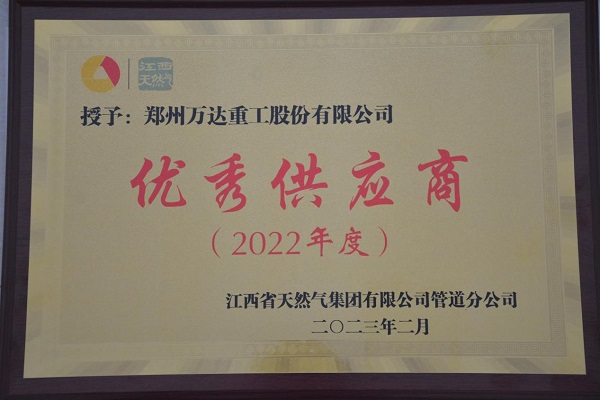 近日,鄭州萬達(dá)重工股份有限公司收到了江西省天然氣集團(tuán)有限公司管道分公司頒發(fā)的2022年度“優(yōu)秀供應(yīng)商”榮譽(yù)獎(jiǎng)牌,獲得該公司2022年度優(yōu)秀供應(yīng)商榮譽(yù)稱號。業(yè)主方對公司所承接彎管項(xiàng)目的產(chǎn)品質(zhì)量、交貨周期、售后服務(wù)等方面給予高度贊揚(yáng)。