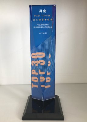 2017/06/29 575 熱烈祝賀鄭州萬達重工股份有限公司榮獲河南新三板TOP30強最具投資價值獎并獲得 2017河南新三板30強榮譽稱號
