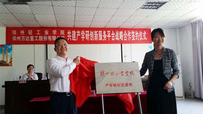 鄭州萬(wàn)達(dá)重工股份有限公司----鄭州輕工業(yè)學(xué)院 共建產(chǎn)學(xué)研創(chuàng)新服務(wù)平臺(tái)戰(zhàn)略合作簽約揭牌儀式