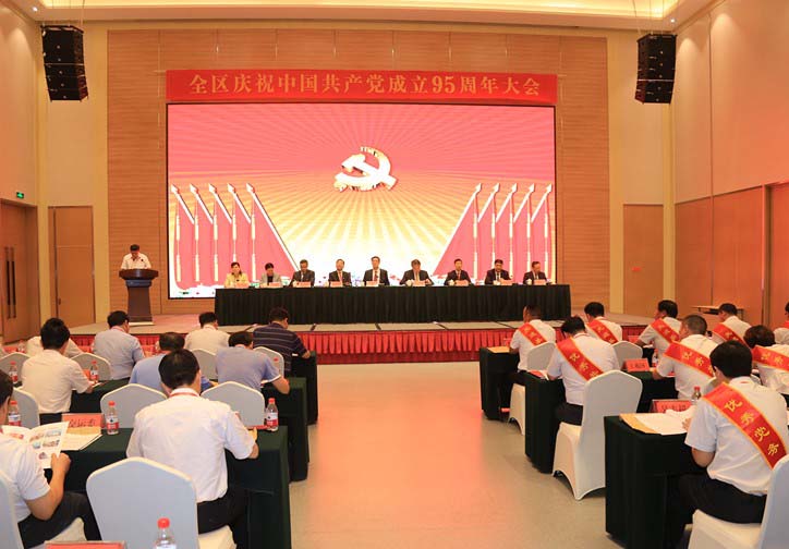 2016/07/06 747 2016年6月30日上午午,航空港實(shí)驗(yàn)區(qū)隆重召開慶祝中國(guó)共產(chǎn)黨成立95周年大會(huì),全區(qū)各區(qū)直委(部)、局辦、國(guó)企主要負(fù)責(zé)同志,各辦事處(社區(qū)服務(wù)中心)黨工委書記,各行政村(社區(qū))黨組織書記,企事業(yè)單位黨組織書記,受表彰的單位代表和優(yōu)秀共產(chǎn)黨員、優(yōu)秀黨務(wù)工作者約400人參加大會(huì)。大會(huì)由區(qū)黨工委副書記、管委會(huì)主任馬健主持,鄭...