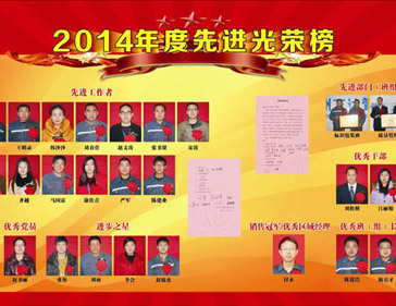 2016/01/28 245 2014年全年工作中,二十三位同志和兩個優(yōu)秀班組表現(xiàn)突出,踐行公司價值、實(shí)干、實(shí)效的工作理念,認(rèn)真工作,愛崗敬業(yè),始終保持旺盛的精神風(fēng)貌和飽滿的工作激情,在各自工作崗位樹立了榜樣,被評為公司的先進(jìn)代表。